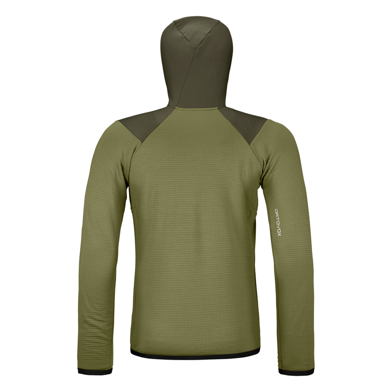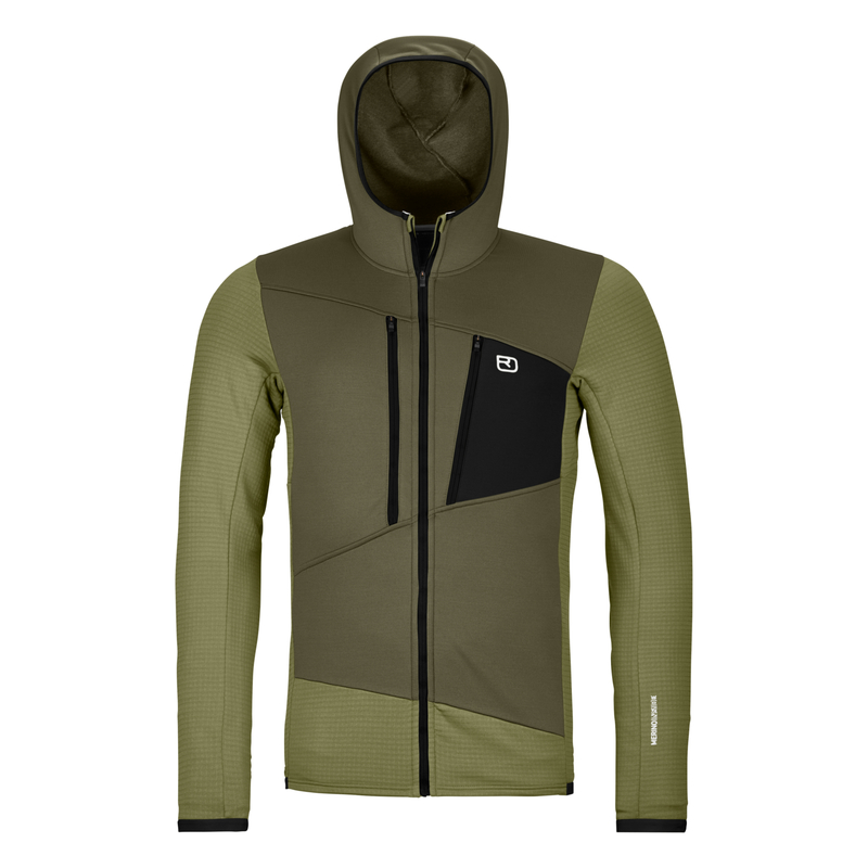 Leichter, technischer Fleece-Hoody für AlpintourenSo vielseitig wie der Berg: Dank cleverem Materialmix bietet der FLEECE GRID HOODY für Herren auf anspruchsvollen Touren angenehme Wärme bei gleichzeitig guter Belüftung. Das MERINO FLEECE GRID Material bindet in seiner feinen Waffelstruktur warme Luft auf der Innenseite und gibt Feuchtigkeit nach außen ab, sodass der Hoody einerseits angenehm wärmt, andererseits aber auch schnell trocknet und äußerst atmungsaktiv ist. Die angenehm weiche Merinowolle auf der Haut sorgt für eine optimale Klimaregulierung und wirkt gleichzeitig geruchshemmend. An exponierten Stellen wie Brust, Schultern und Kopf schützen Einsätze aus elastischem und atmungsaktiven MERINO FLEECE LIGHT vor Wind und Kälte. Zwei rucksackkompatible Brusttaschen bieten Platz für Kartenmaterial, Handy oder Riegel. Die eng anliegende Kapuze passt gut unter den Helm und schützt den Kopf an kalten Tagen. Dank des hohen Stretchvermögens und des großzügigen Schnitts im Schulterbereich bietet der Hoody optimale Bewegungsfreiheit und macht als alpiner Allrounder jedes Abenteuer mit.