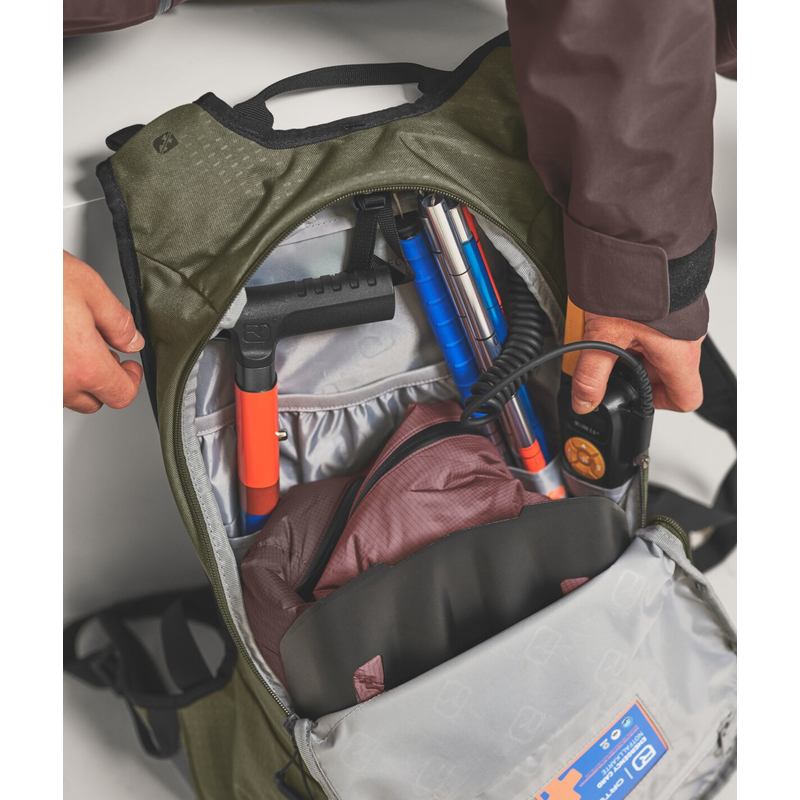 Kleiner, auf das Wesentliche reduzierter Freeride-Rucksack für Powder-TageDer POWDER RIDER 16 ist für kleine Touren mit großem Potential für Tiefschneeabenteuer gemacht. Mit nur 660 Gramm ist der kleine Freeride-Rucksack extrem leicht, dabei findet dennoch alles Wichtige seinen Platz. Dank Halterung für Schaufel und Sonde im Innenraum ist deine Notfallausrüstung immer schnell zugänglich. Durch den vorgeformten Rücken liegt der POWDER RIDER 16 zudem sehr bequem am Rücken an: Seine schlanke Silhouette schmiegt sich an den Körper an und sitzt somit bei jedem Turn perfekt. Die Trinksystemvorbereitung für sportliche Anstiege und Abfahrten fehlt genauso wenig wie Helmnetz, Kartenfach und Brustgurt mit Signalpfeife: Genug für einen Tag im Backcountry. Der POWDER RIDER 16 ist somit ein leichter und zuverlässiger Begleiter für ausgiebige Tiefschneeabenteuer!