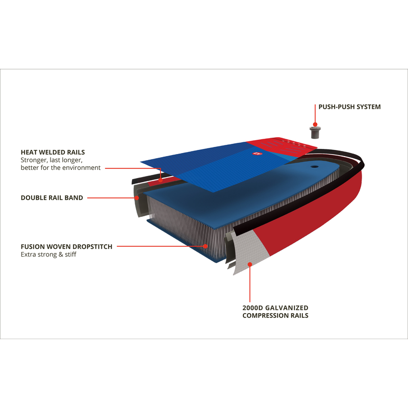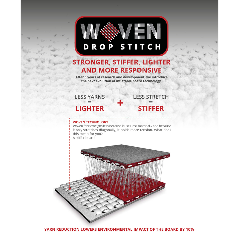 Unsere "Woven Technology" verbessert unsere aufblasbaren Boards in jeder Hinsicht. Weniger Gewicht, bessere Beschleunigung, einfacher zu transportieren.